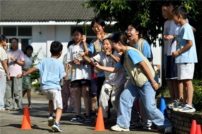 (四川大学-润心续爱小队成员带孩子们玩转趣味运动会)